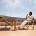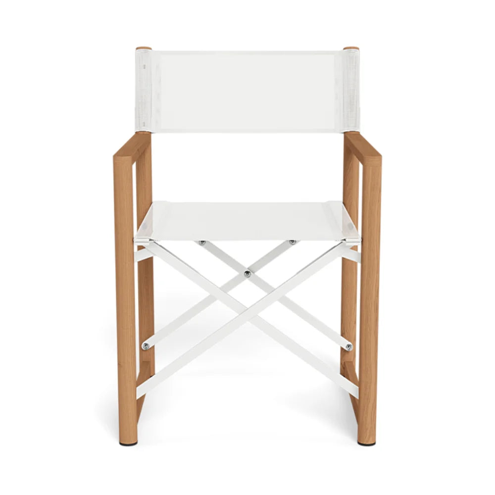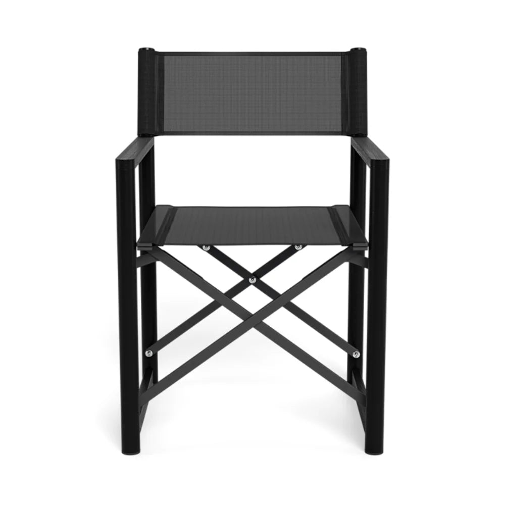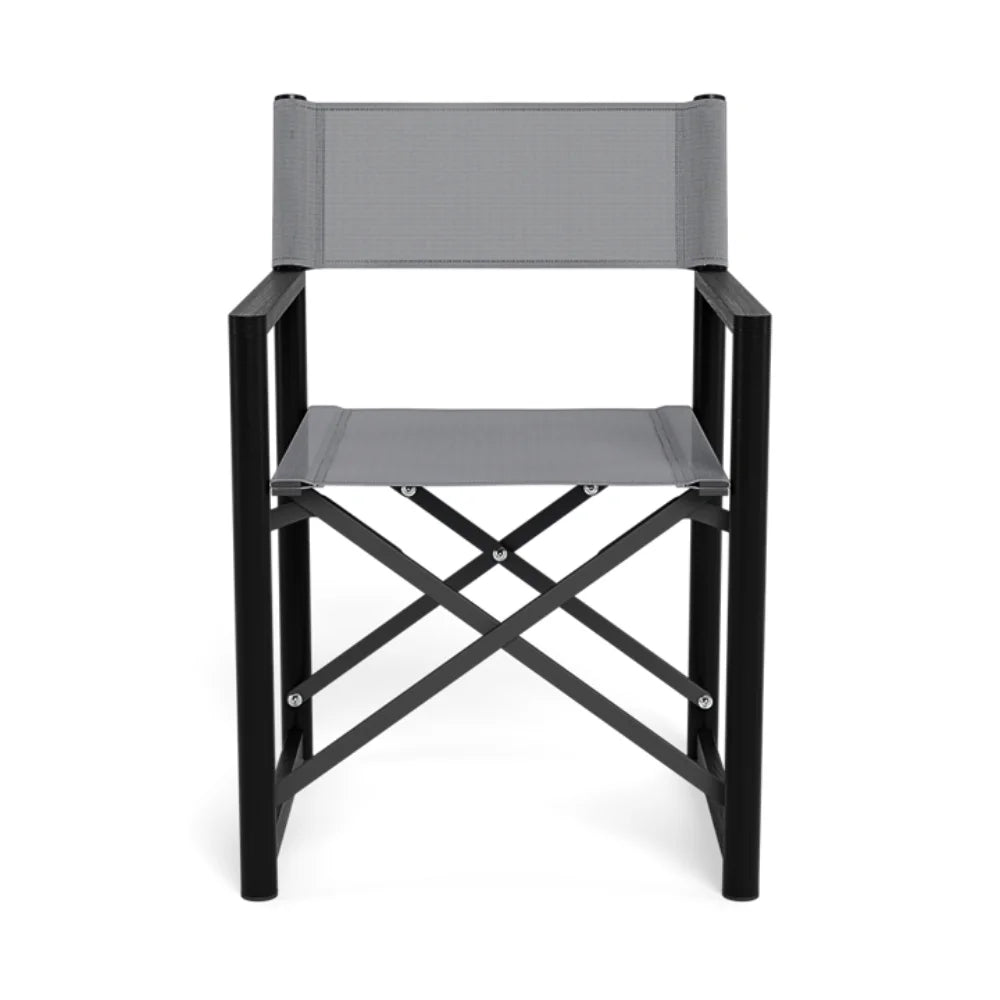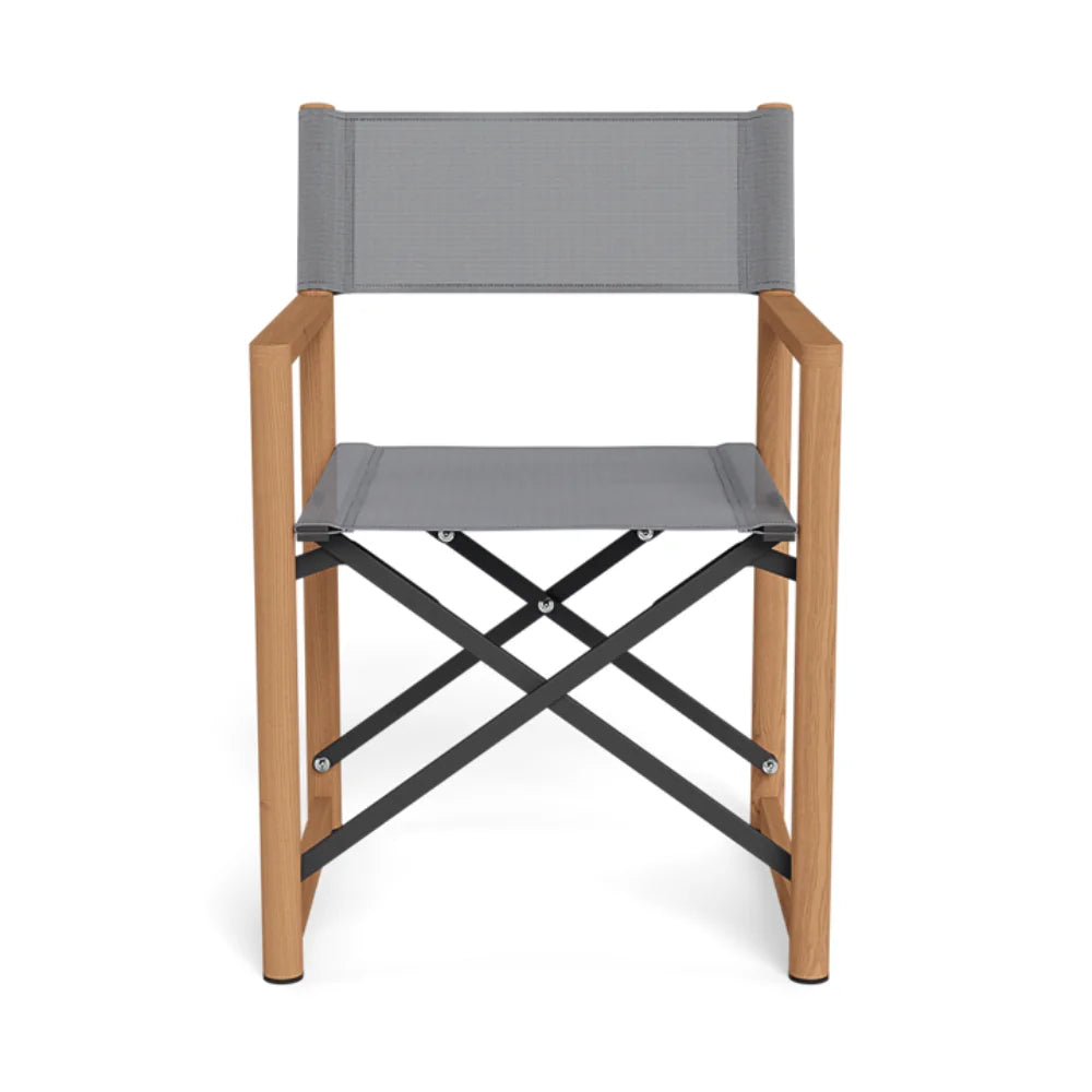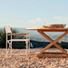 Our Pacific collection features clean lines with a California rustic essence. A Harbour bestseller and signature style, the Pacific Dining Chair is streamlined comfort — enjoy a Batyline sling suspension in Black, White or Silver for added comfort supported by aluminum hardware, all crafted in a solid Grade A Indonesian teak frame available in Charcoal or Natural. Our take on the classic director arm chair, this modern dining chair effortlessly fits in any outdoor space, plus it is foldable for easy storage.
