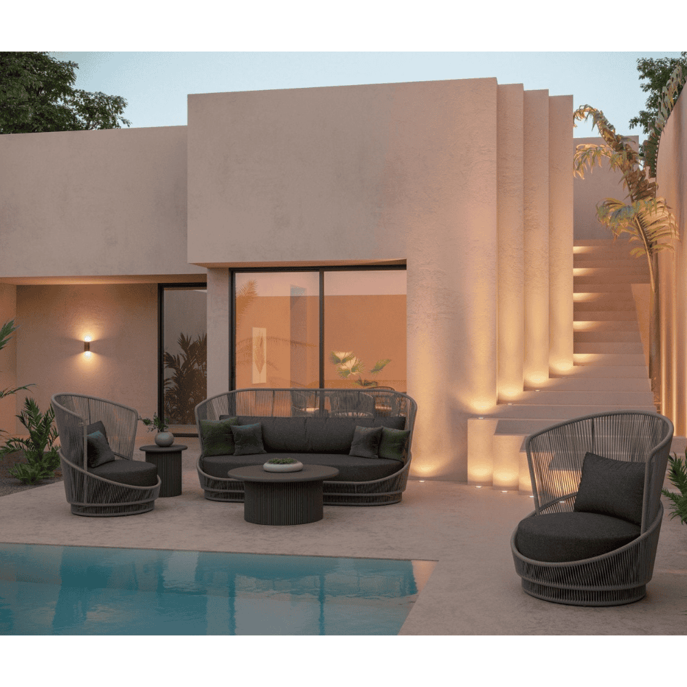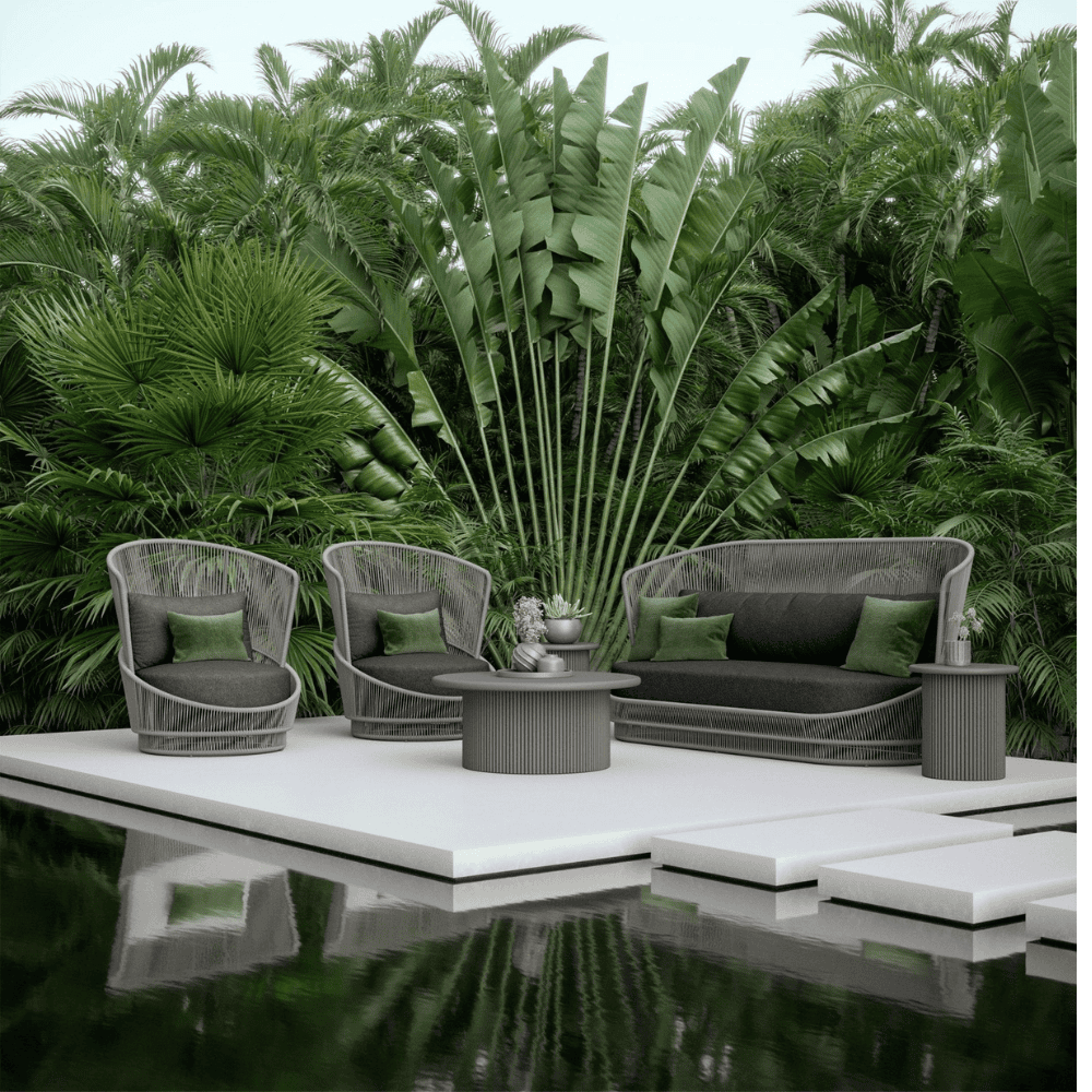 The Palma 3 Seat Outdoor Sofa by Boxhill is a prime example of coastal modern style. Its innovatively luxuriant, all-weather textelene rope is supported by a striking curved back for a relaxed feel. Performance fabric cushions are generously proportioned and designed to weather any climate. The Palma collection is a testament to craftsmanship and elevates outdoor furniture design.