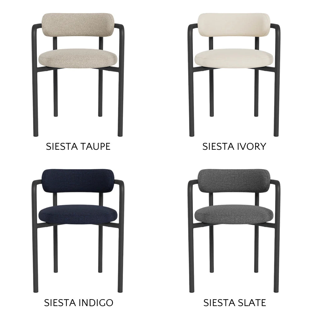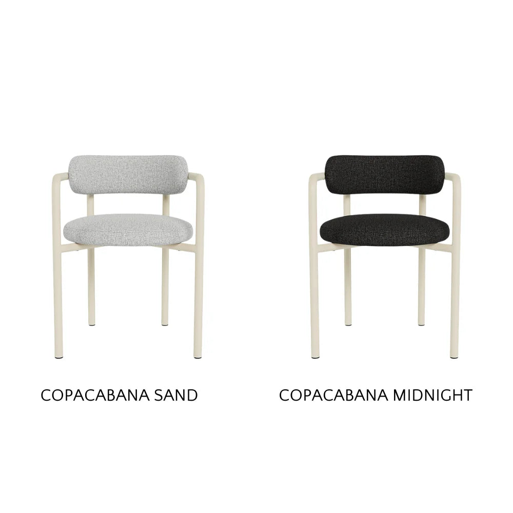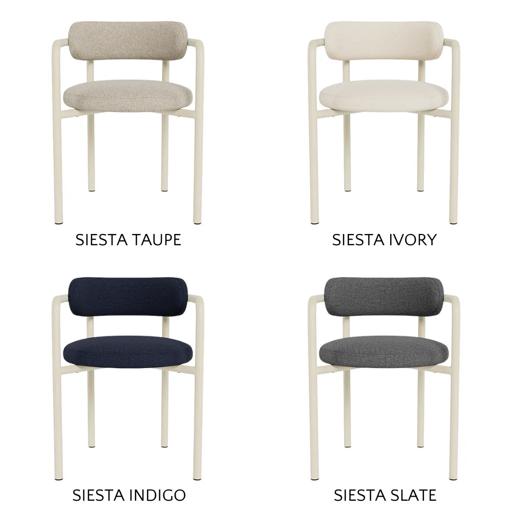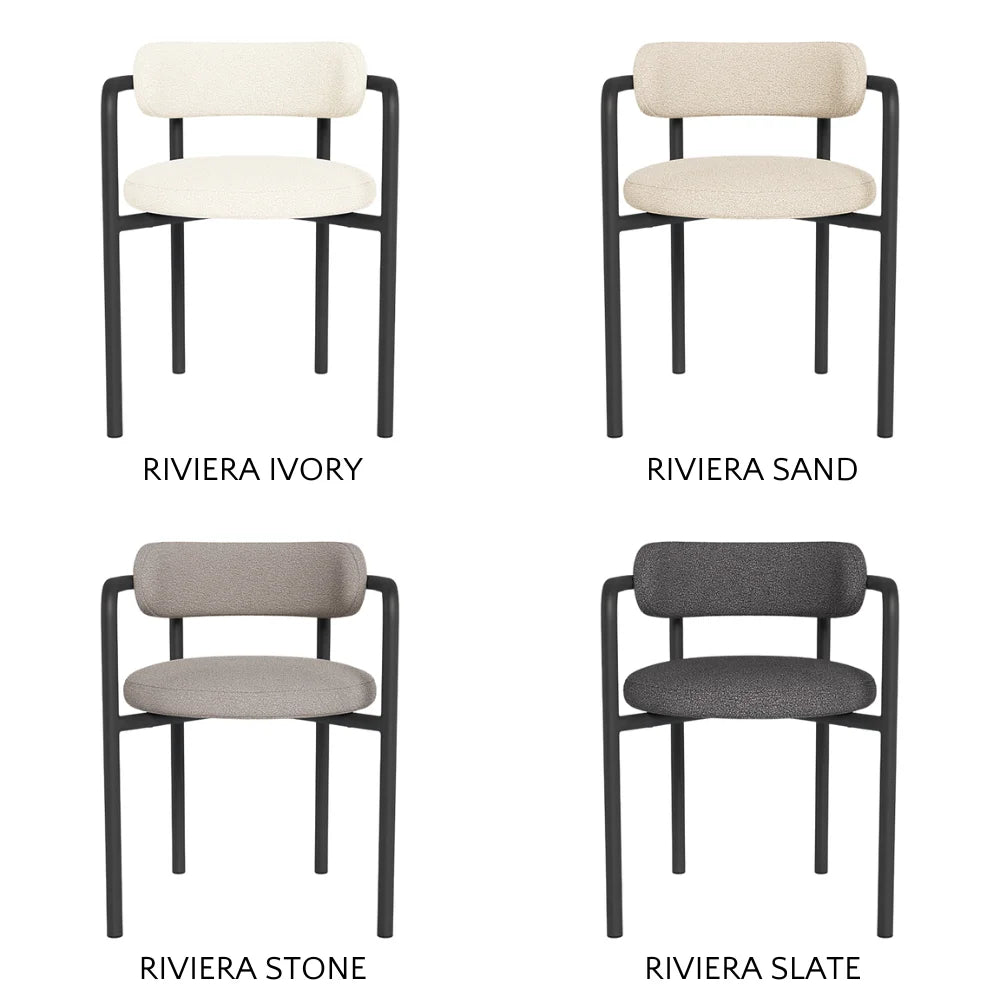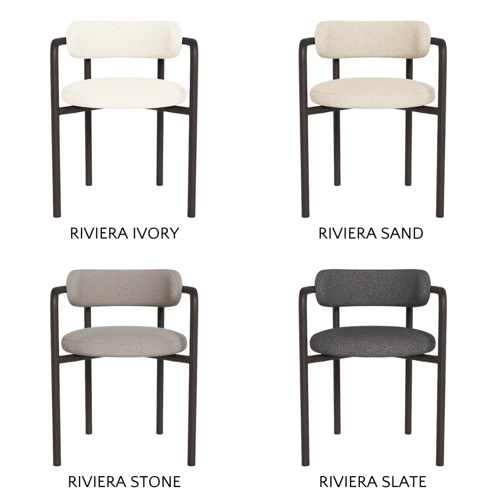 A contemporary and classic study in soft curves, our Porto collection creates a natural interplay between shadow and light with sculptural forms in the base. The Porto Dining Chair is true comfort — featuring a frame of thin aluminum tube in Aluminum Bone upholstered in performance textiles in Riviera Ivory. Streamlined and elegantly simple, this great all–around outdoor dining chair echoes the signature curves and rounded shapes of the collection's tables and pairs nicely with a variety of other collections as well. Place it with any dining table to complete your outdoor dining set.