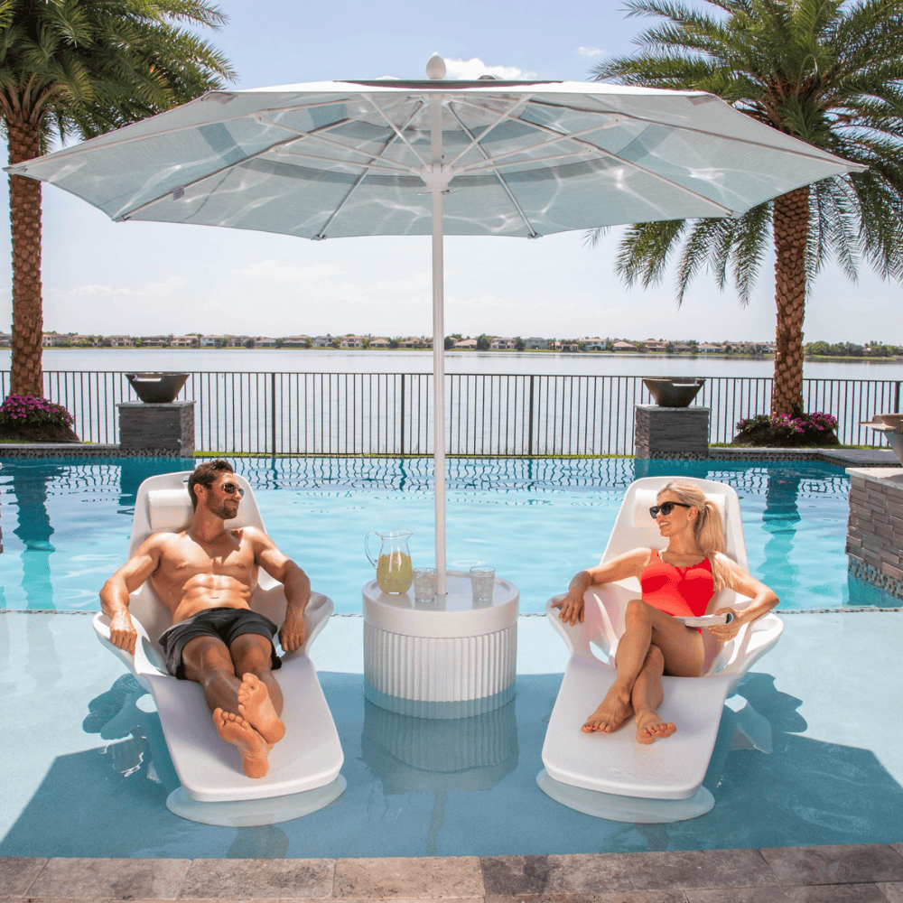 SHOPBOXHILL'S Ripple In-Pool Wide Side Table has modern design and function that is made for the shade! Crafted with meticulous attention to detail, the Ripple In-Pool Wide Side Table boasts a unique rippled design that mimics the gentle flow of water, creating a visually captivating accent piece as well as a convenient place for your refreshments. Refine your downtime and pair it with the Ripple Planter- a tranquil and practical addition to any poolside retreat!
