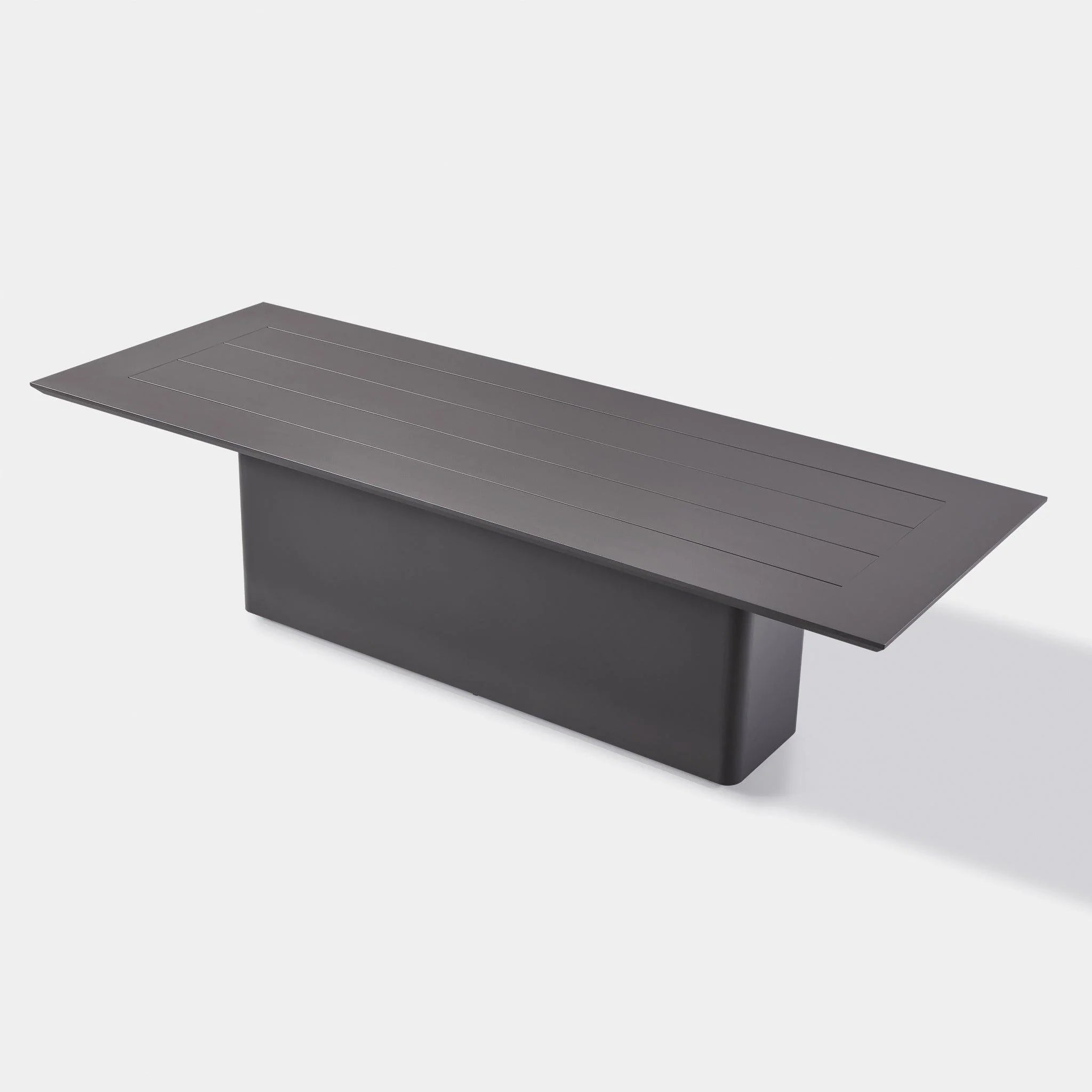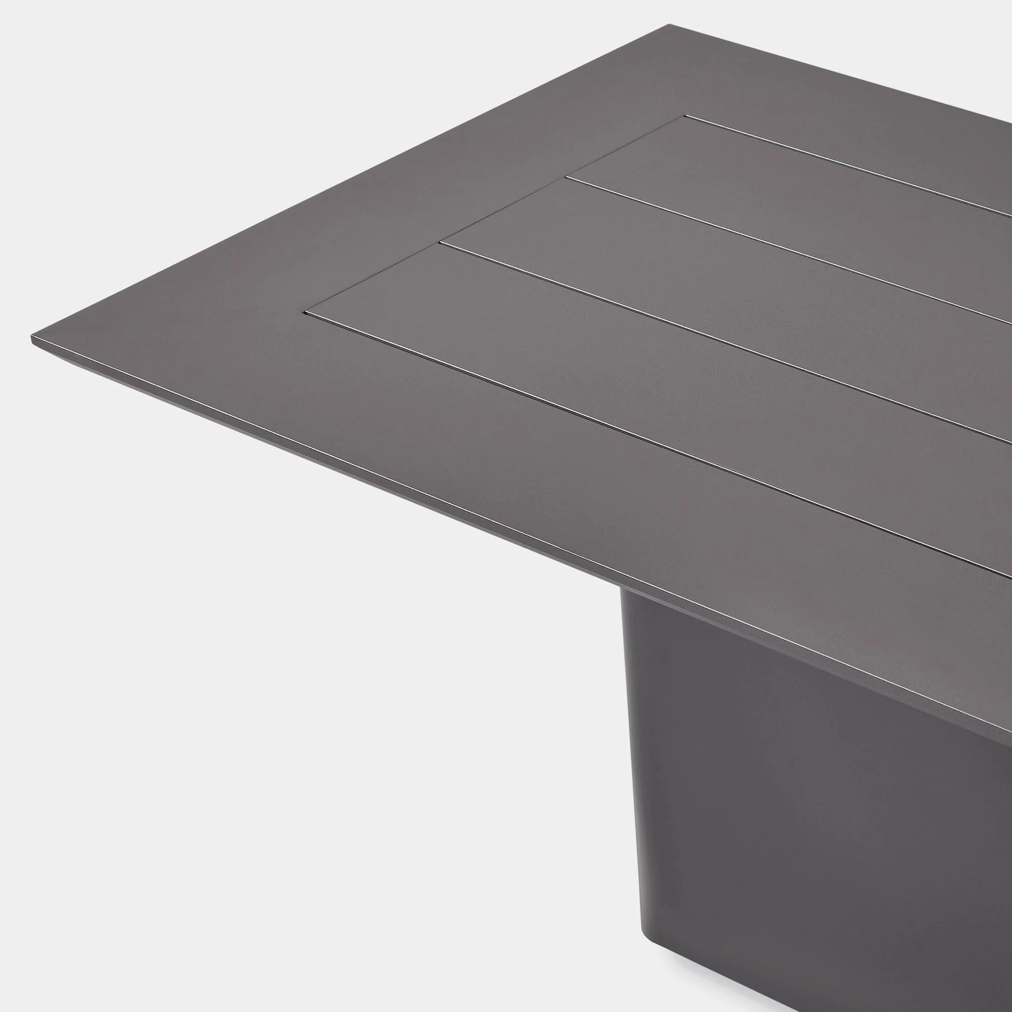 Introducing the Santorini Outdoor Slatted Rectangle Dining Table – boasting a sleek and contemporary design. Crafted from resilient extruded aluminum, it showcases a distinctive hollow plinth base and a beveled top, achieving a strikingly bold and minimalist aesthetic. Equipped with a robust. . . Show More