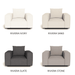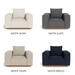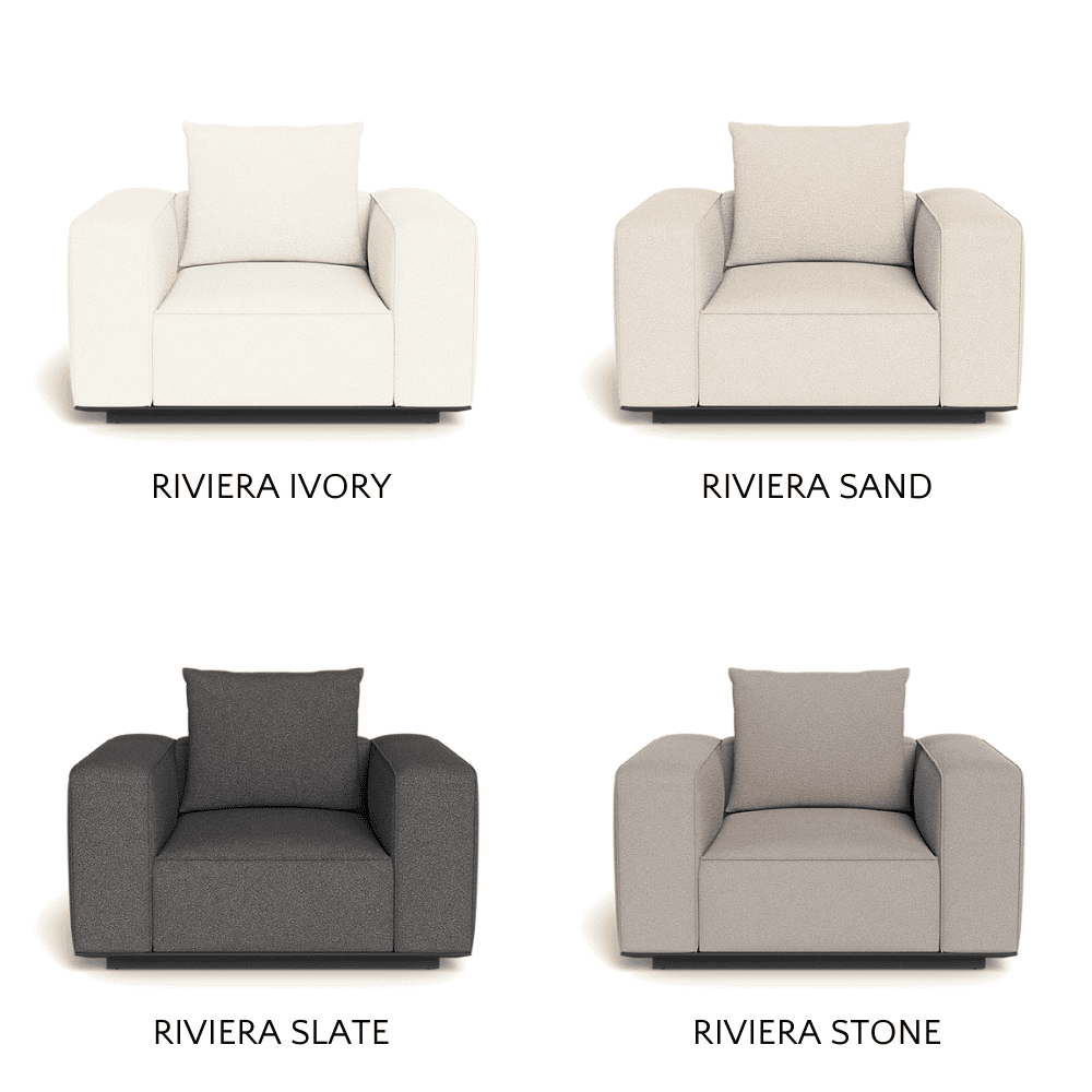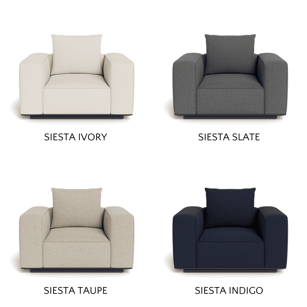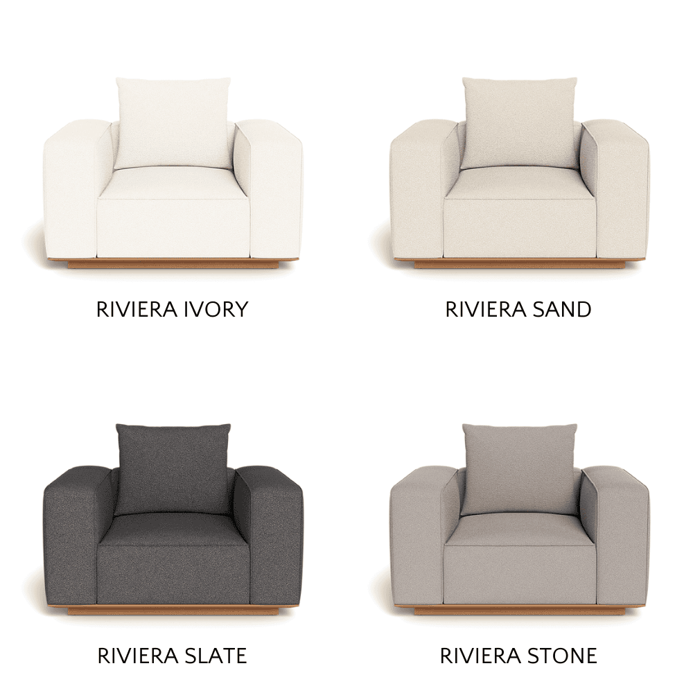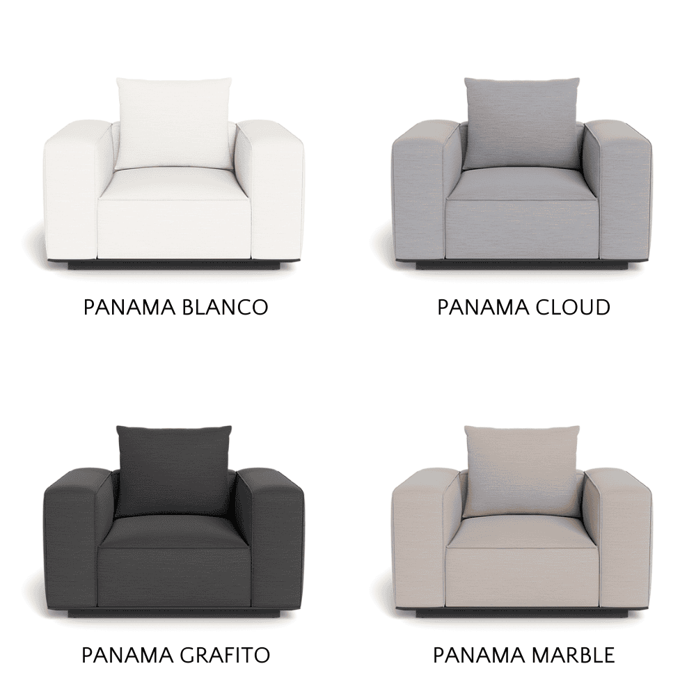 - Aluminum structure fills the cushioned frame and base making the collection not only durable but sturdy.