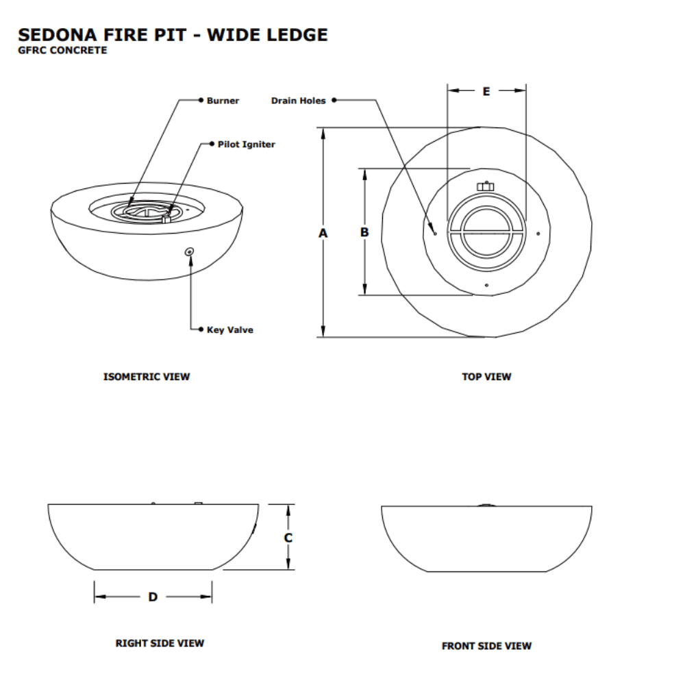 Sedona Concrete Fire Pit Bowl - Wide Ledge