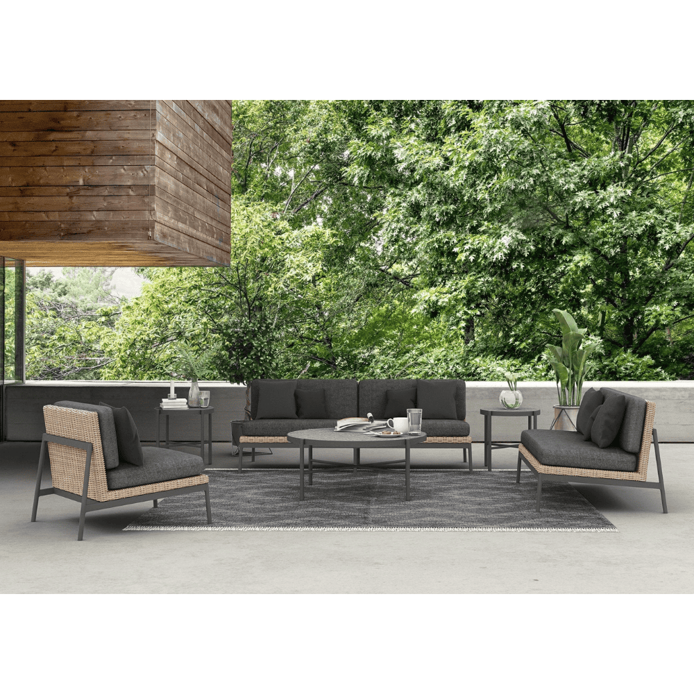 Elevate your outdoor area with the Terra 2 Seat Outdoor Sofa by Boxhill. This exquisite sofa seamlessly blends mid-century design with contemporary elegance, resulting in a captivating addition to any outdoor setting. Meticulously handcrafted using premium materials, including sumptuous Solvita fabric, matte-finished powder-coated aluminum, and resilient handwoven all-weather natural wicker, this club chair is designed to withstand the rigors of outdoor elements while providing lasting comfort. Whether for casual gatherings or formal occasions, this sofa is perfect for any scenario. Don't overlook the opportunity to enhance your outdoor collection with this stylish and practical masterpiece.