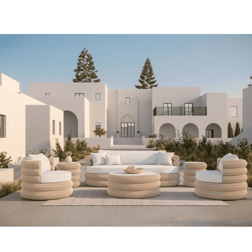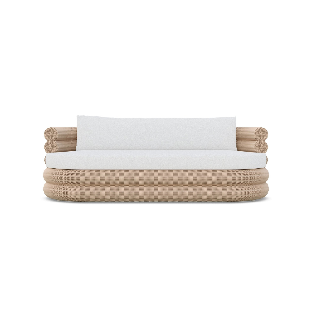 Indulge in opulence and relaxation with the Texoma 3 Seat Outdoor Sofa by Boxhill. This premium sofa is expertly constructed using all-weather wicker in a sophisticated almond hue, ensuring its resilience against any weather conditions. The meticulous attention to detail is evident in the intricate textures and clean lines, resulting in a harmonious blend of timeless glamour and contemporary aesthetics. The perfectly proportioned design offers both exceptional comfort and style. Enhanced by the luxurious chenille outdoor performance fabric, this club chair guarantees optimal comfort and durability, making it an ideal addition to any outdoor living space. Elevate your outdoor furniture collection with the incomparable Texoma 3 seat outdoor sofa by Boxhill.