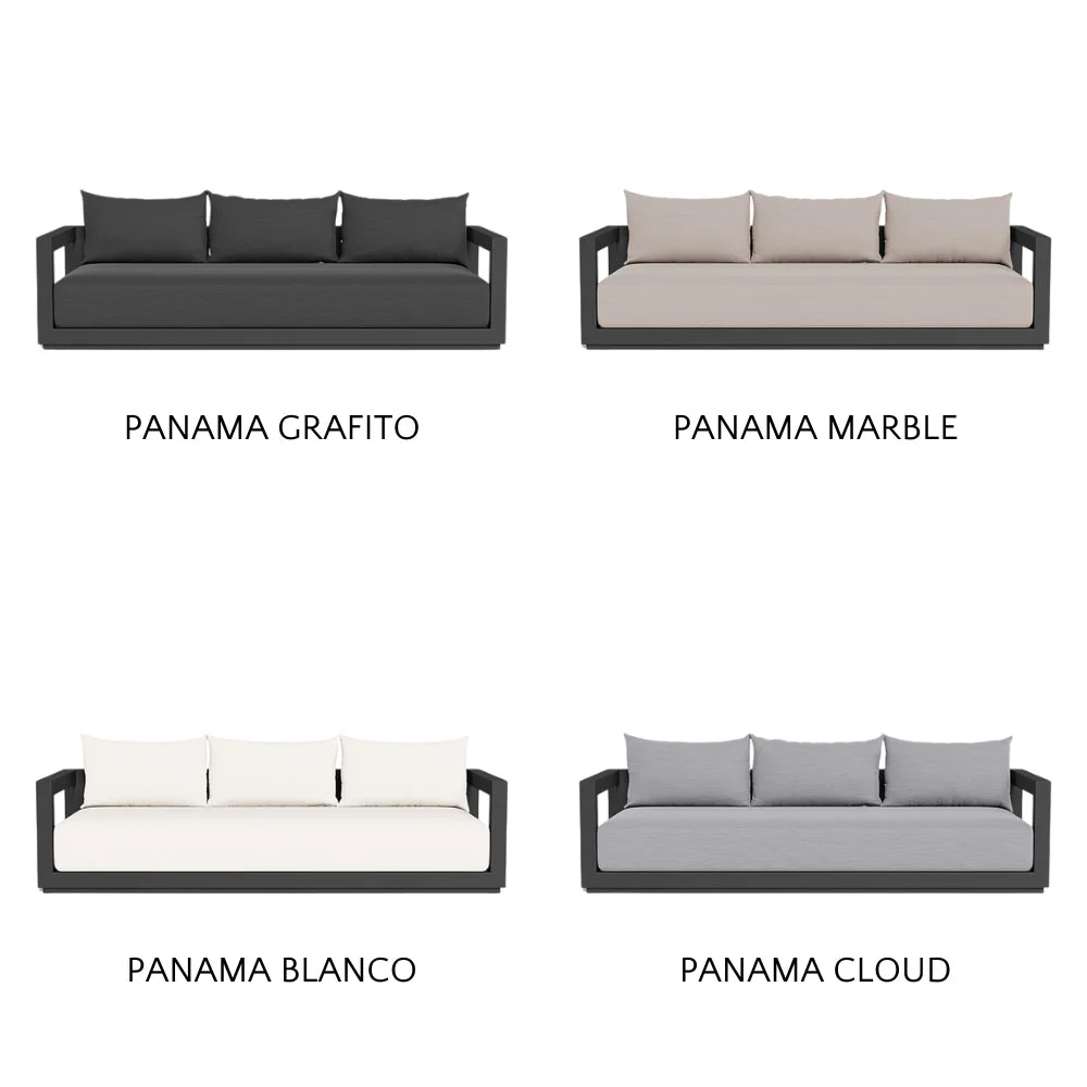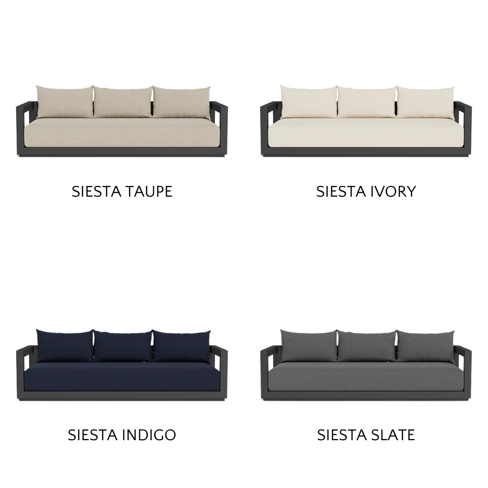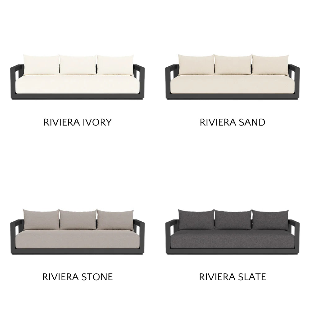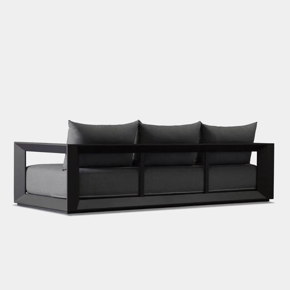 Our Vaucluse collection explores simple geometries with angular details in a contemporary study of triangles. Surprising and subtle, the Vaucluse 3 Seat Sofa is the perfect escape — lounge on a deep all–weather bench cushion supported by a Batyline sling suspension on a powder coated extruded aluminum frame. Outwardly square geometries actually angle inward in triangular form, creating a dynamic play on shapes that defines the design. This streamlined piece is equally versatile, bringing a sense of balance to any space.