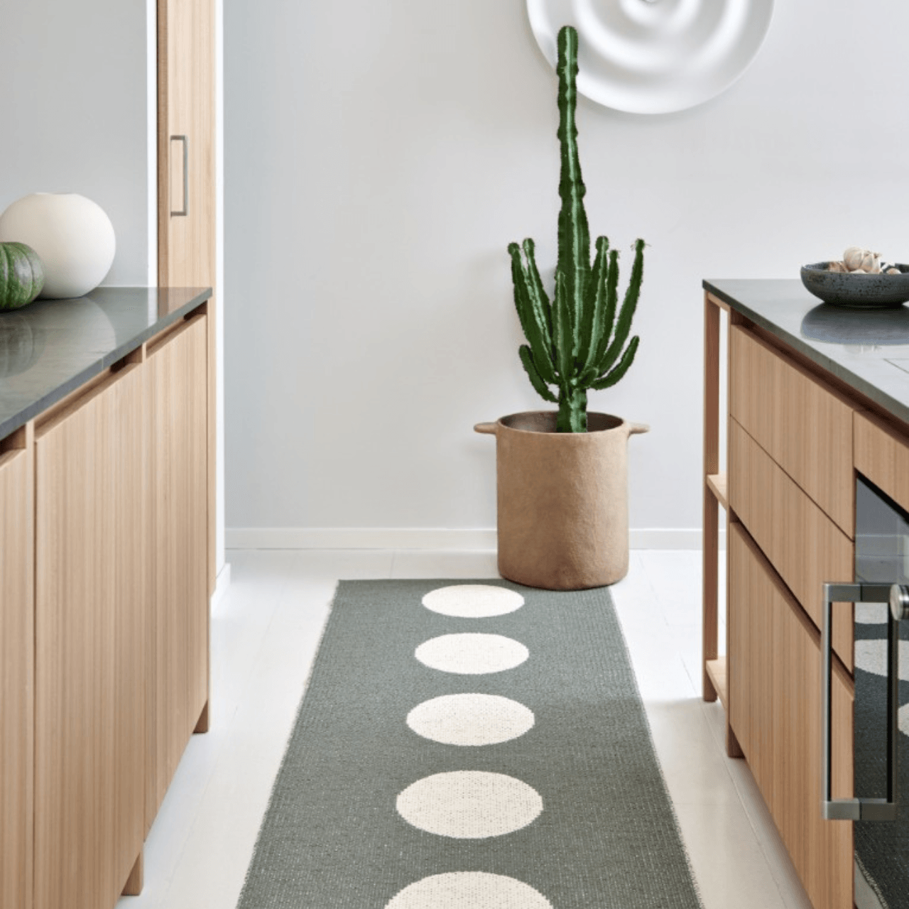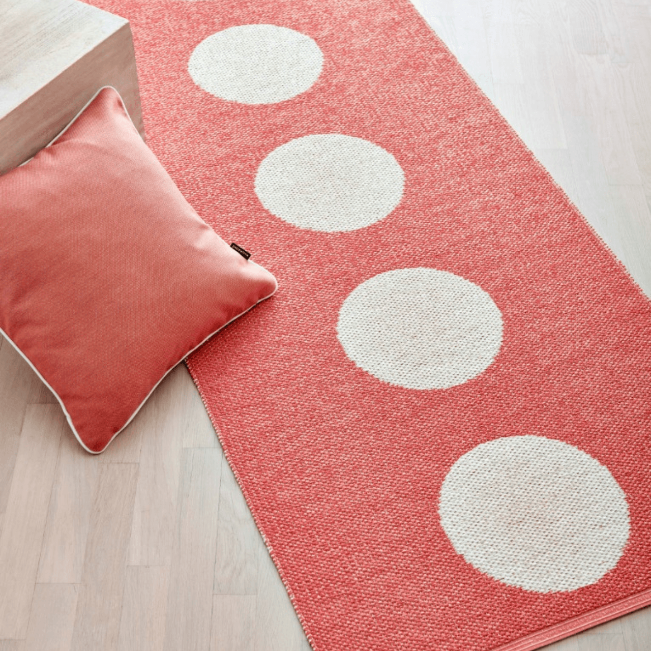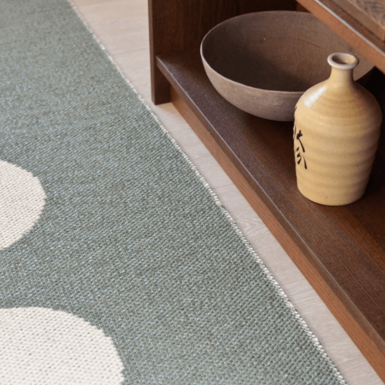 The plastic we use is approved for use in the food industry and to produce toys in both the EU and the US. PVC is a plastic that can be melted down and recycled. But since it is not possible to guarantee that recycled plastic is completely non-toxic, as virgin material always is, we choose to manufacture our rugs with new Swedish raw material.
